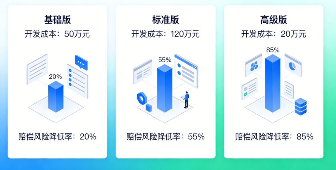 小型照护机构未配备系统前,年均意外事故赔偿金额约8万元,配备基础版系统(开发价格15-25万元)后,年均赔偿金额可降至2.4万元以下,每年可节省5.6万元以上,2-4年即可收回开发投入。大型连锁照护机构未配备系统前,年均意外事故赔偿金额约50万元,配备定制版系统(开发价格40-55万元)后,年均赔偿金额可降至10万元以下,每年可节省40万元以上,1年即可收回开发投入。